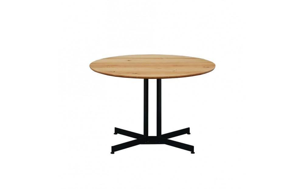 無垢材の天板とスチール脚を用いた、円形のテーブルです。