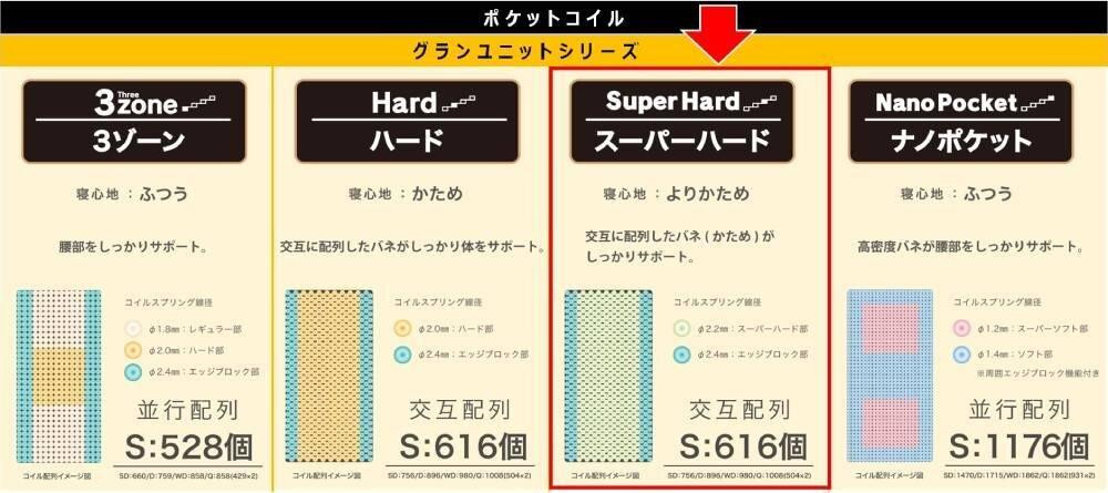交互に配列した固めのコイルが、しっかりと体をサポート。