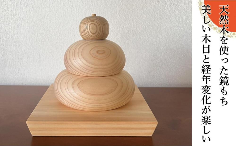 お正月に必要なおめでたい鏡もちを、福岡県産のヒノキで作りました。