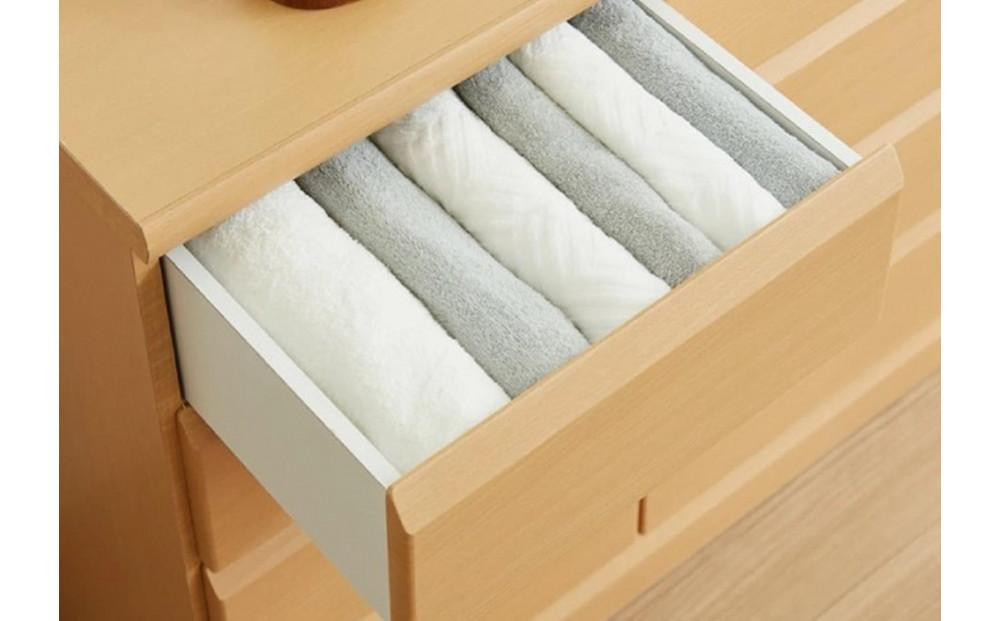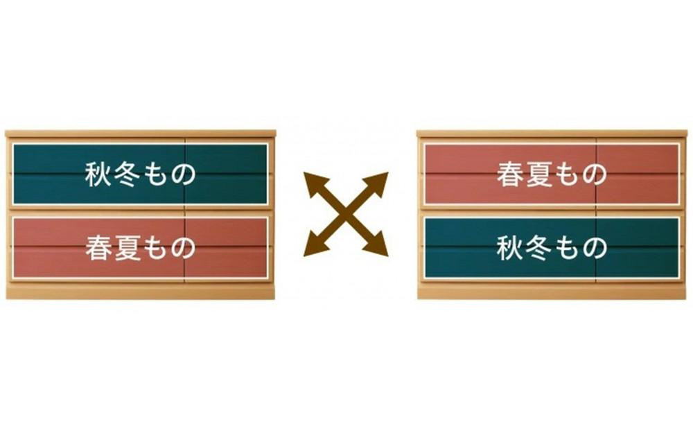 小引出し・大引出しの大きさは共通ですので衣類を収納したまま好みの位置に入替えができます。