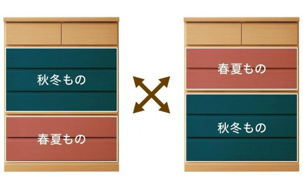 大引出しの大きさは共通ですので衣類を収納したまま上下の入替えが簡単にできます。