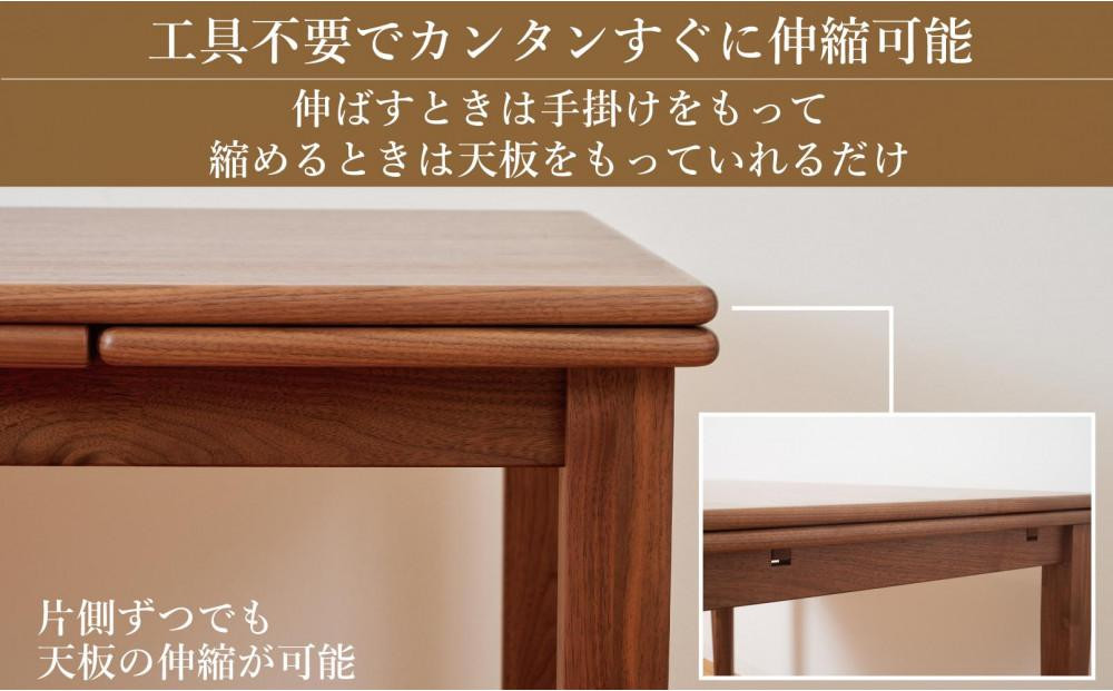 【急な来客でも安心。簡単操作で伸縮可能な天然木のダイニングテーブル】