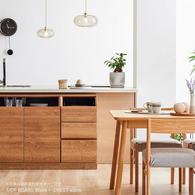 高さ80cmのイットは腰窓やカウンター下などにおさまるサイズ感。奥行も40cmとスリムな設計で、リビング・ダイニング、キッチンなど、どんな場所でもフィットするリビング収納です。