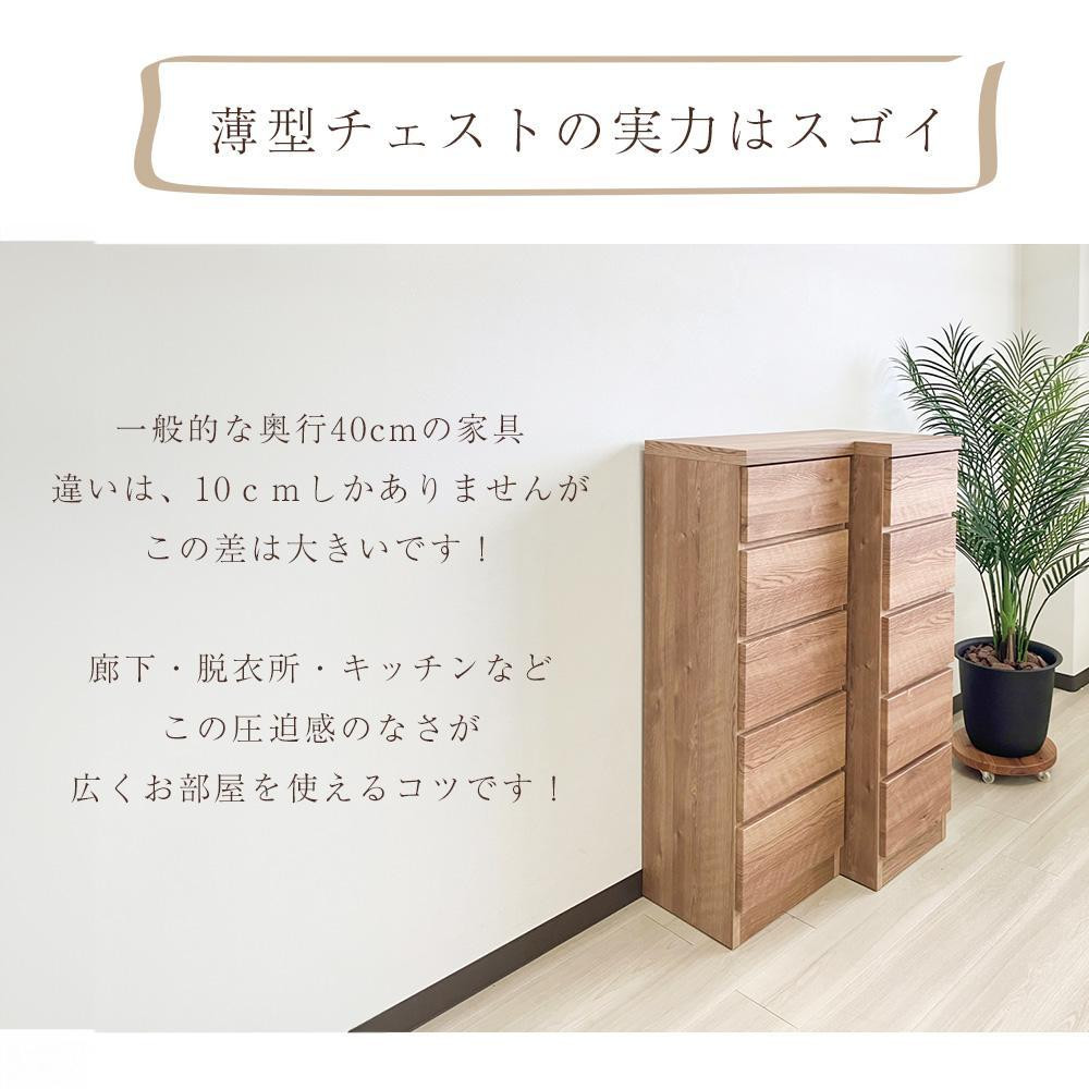 狭い場所でも置けるサイズ。通常の奥行サイズのチェストよりも