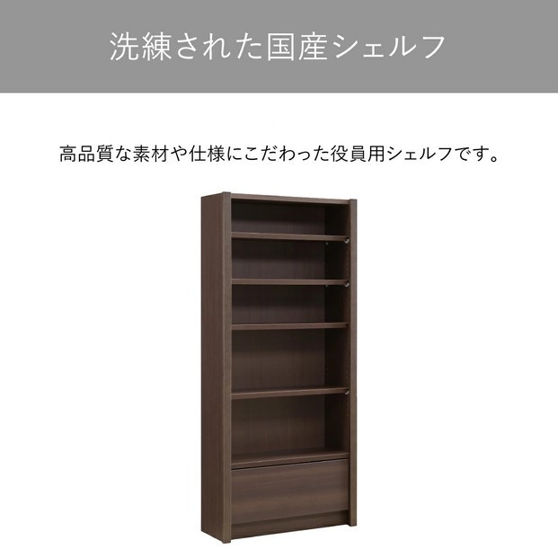 奥浅設計で場所を取らずに、しっかりとした収納力を持ち、頑丈で使い勝手のよい木製シェルフは、シンプルなデザインで役員家具としてだけではなく、書斎やリビングなどご家庭でもご使用いただけます。