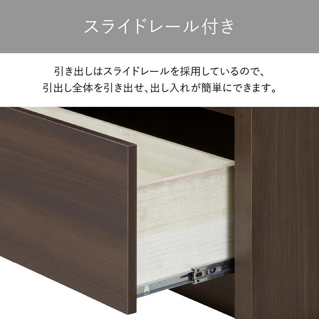 各棚板は30mmピッチ、20段階調整可で、更にシェルフの下部には引出しを設け、嵩張りがちなコード類などの収納も可能です。