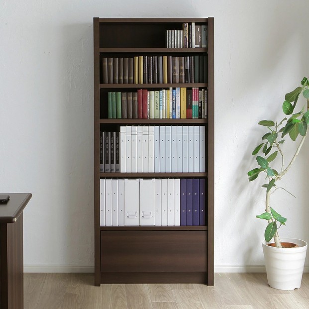 「エクティー」シリーズの美しくも厳かなダークブラウンのオープンタイプのブックシェルフです。
