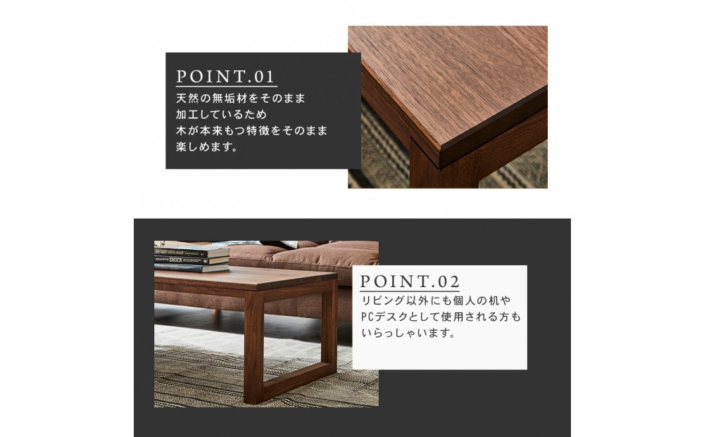 | 容量 | 【大川家具】無垢材 センターテーブル 凛 四角脚 幅1200【設置付き】WN カラー:ウォールナット 幅:1200mm 奥行:500mm 高さ:350mm 材質/天板・脚 無垢材 F☆☆☆☆ 塗装/オイル塗装 |