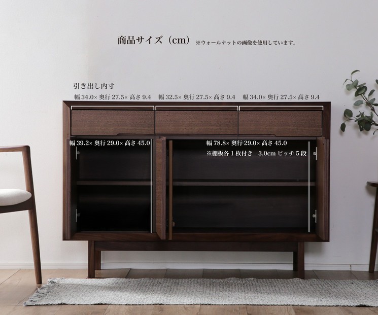 | 容量 | 【カラー】下記2色よりお選びください ホワイトオーク/ウォールナット 【サイズ】 ●全体:W1280×D380×H850 ●扉収納(棚板各1枚付) ・両開き:W788×D290×H450 ・片開き:W1280×D290×H850 (移動棚:30mmピッチ5段) ●脚高さ:180mm ※大量生産の商品ではございません。 職人が時間をかけて制作しておりますので、在庫がない場合がございます。 お気軽にお尋ねください。 ※使用デバイスや環境設定により実物と色味が異なる場合がございます。 イメージ違いによる交換はお受けできかねますのでご了承ください。 |