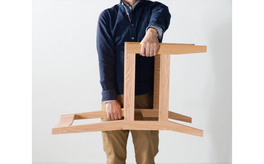両サイドのフレームに座面と背もたれを挟み込む、シンプルな構造で椅子をデザインしました。