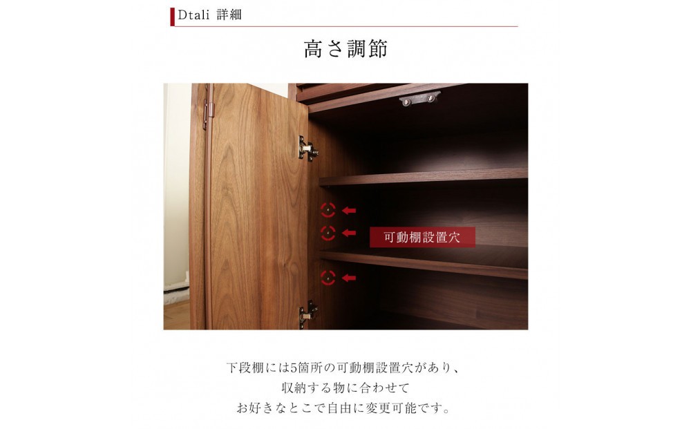| 容量 | ALMA サイドボード 幅90cm 外寸: 幅90.3×奥行45×高さ88.5cm(本体高78.5cm,脚部10cm) 内寸: 上段引出し:幅35.5×奥行32×高さ8cm 下段左:幅55×奥行41×高さ56.5cm 下段右:幅27×奥行41×高さ56.5cm ■素材 全面・脚・面縁/レッドオーク,ウォールナット無垢材・オイル塗装 引出(箱組) 垣板:桐材 底板:シナ合板 天板・外側面:CE グロスマット 内装・背面:CEプリント |