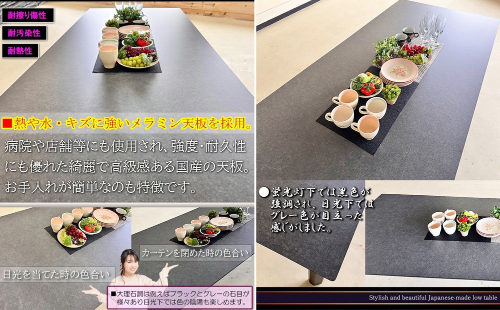 お客様お助けワード:座卓 折りたたみ 大きい 完成品 テーブル 軽量 国産 大理石調 ダイニングテーブル 折りたたみテーブル 大理石風 座卓テーブル おしゃれ 和風 和室 洋室 ちゃぶ台 折れ脚 ローテーブル 折り畳みテーブル 黒 ブラック グレー 自社製造 和モダン 大理石柄 小さめ コンパクト 大きめ 食卓テーブル リビング学習デスク 小さい 大川家具職人 畳んで立てかけて収納できます! アイカメラミン化粧板 MDF材 無垢集成材 頑丈 Arbel