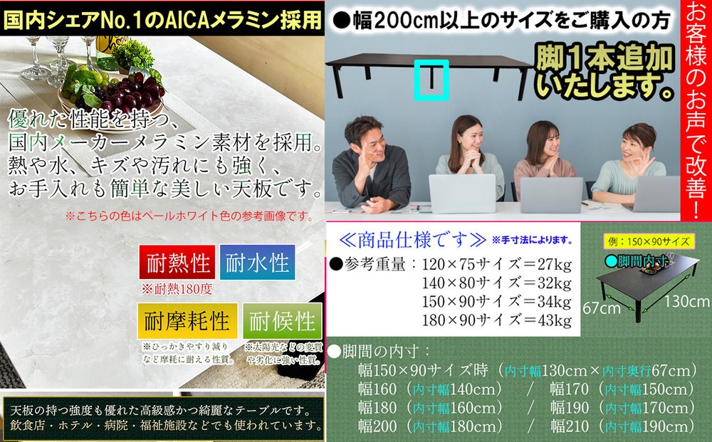 病院・飲食店・ホテルなどでも使用される信頼ある国内最大手メラミンメーカーを採用しています。