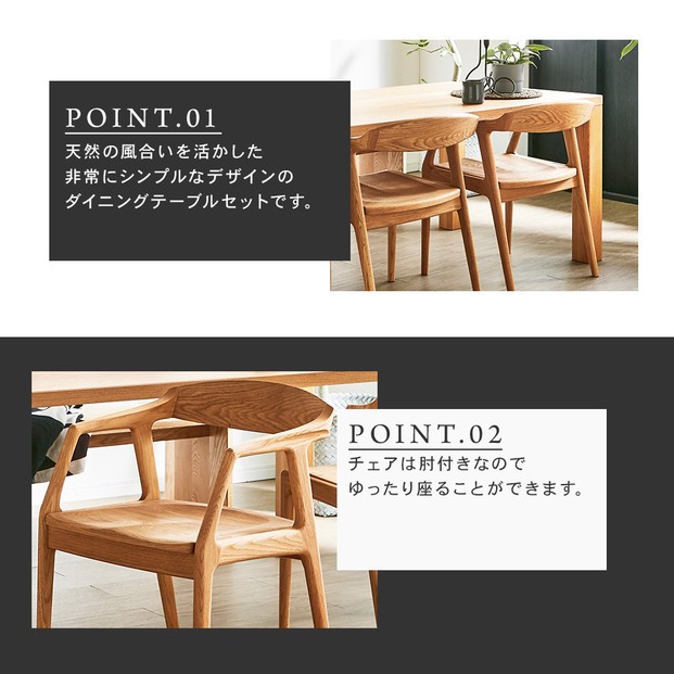 | 容量 | 【凛テーブル】1台 幅1500mm 奥行き800mm 高さ720mm 【凛type2ベンチ】1台 幅1250mm 奥行370mm 高さ430mm 【肘付きチェア】2脚 幅520mm 奥行535mm 高さ735mm (座面までの高さ445mm) 【テーブル】 天板:ブラックチェリー無垢材 脚:ブラックチェリー無垢材 【ベンチ・チェア】 本体 ブラックチェリー材無垢材 塗装:オイル塗装 両方ともF☆☆☆☆(健康と環境にやさしい仕様です) ※ブラックチェリーは、経年により色の変化が激しい材種です。ご了承ください。 |