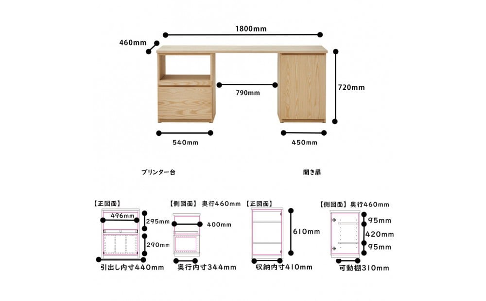 | 容量 | 外寸:幅1800mm×奥行460mm×高さ720mm 材質/天板・前板 無垢材 F☆☆☆☆ 材種/ホワイトアッシュ 塗装/オイル塗装:F☆☆☆☆(健康と環境にやさしい仕様です) |