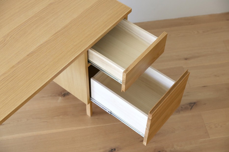 突板天板は、無垢材の薄い板である「突板」を繊細に重ねているため、天然木本来の美しい木目はそのままに、無垢材のような雰囲気を楽しむことができます。