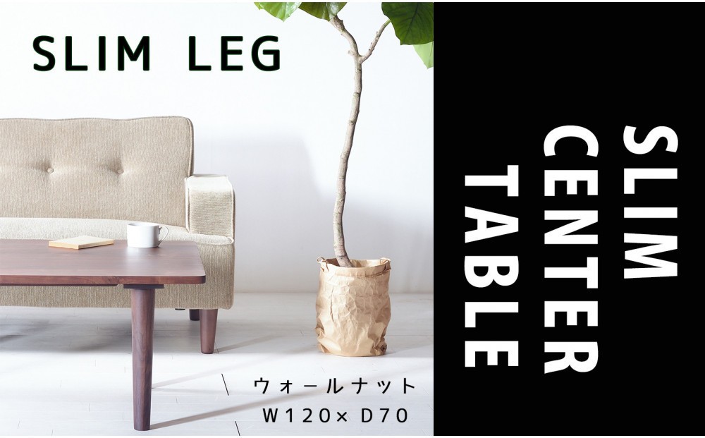| 容量 | スリムセンターテーブル ■サイズ 外寸:幅120cm×奥行70cm×高さ40cm 天板厚:2cm ■素材 ウォールナット材 ■塗装 ウレタン塗装 ■配送方法 玄関引渡し ■梱包サイズ幅128cm×奥行78cm×高さ12cm (脚は同梱されています) ■15kg |