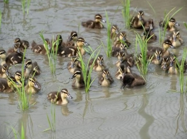 この日本酒は、地元行橋産の山田錦を使っています。しかもそのお米は、合鴨農法により栽培された特別栽培米の山田錦で、「50S」と「20S」のために地元の方に作っていただいたお米です。合鴨農法とは、水田に合鴨を放すことによって、合鴨が土や水をかき回し、水田に酸素が補給され栄養が入るのが特徴です。また農薬を使用せず、雑草や害虫は合鴨が餌として食べ、またフンが稲の養分となる自然に優しい農法です。春から夏にかけて合鴨が田んぼを無邪気に泳ぎ回る風景を見ることができます。