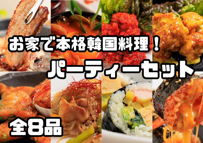 当店人気の韓国料理8品をパーティーセットにしてお届けします。これさえあれば、お家で気軽に韓国気分が味わえます。