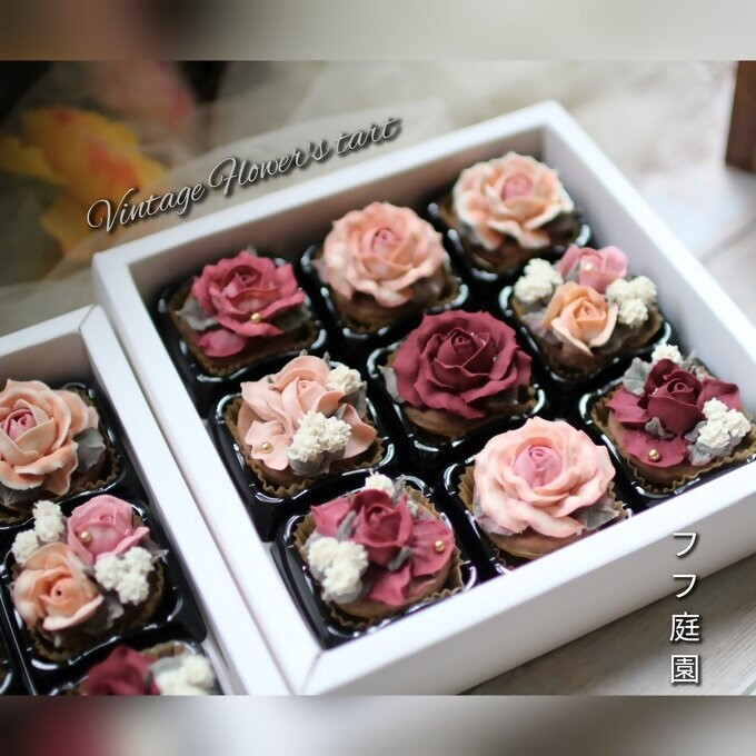 DC-009_ビンテージ風あんフラワークッキー9個入り フラワータルト 食べられるお花!あんこのお花!【風呂敷ラッピング】和菓子