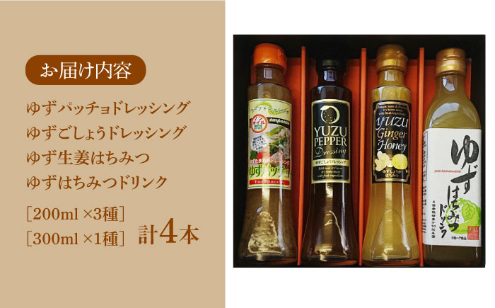 ゆずを使ったドレッシング、ドリンクのセットです。 ノンオイル ドレッシング 2種 & ゆずはちみつ ドリンク2種 セット《豊前市》【ハウスボトラーズ】調味料 飲料 ジュース [VAX012]