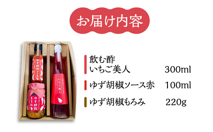 福岡の恵みをギュッと!地産堪能セット <いちご美人> 飲む酢 & ゆず胡椒 ソース / もろみ セット 《豊前市》【株式会社ワカヤマ】地産 福岡 万能 調味料 酢 [VBW006]