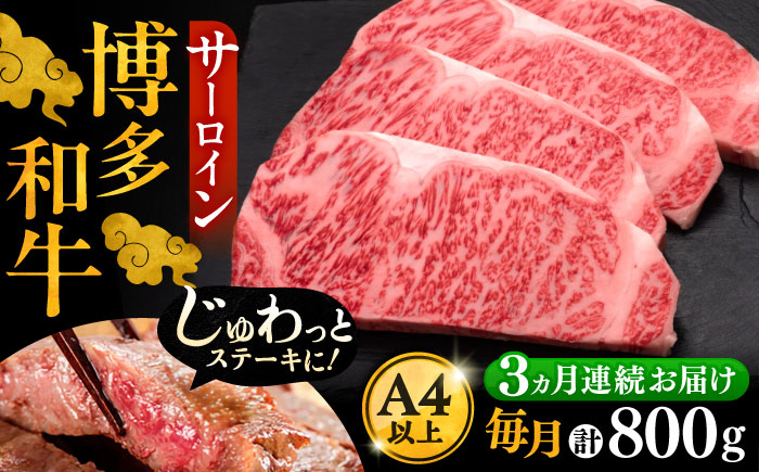 華やかな香り、濃厚な味わい「サーロイン」 【全3回定期便】博多和牛 サーロイン ステーキ 200g × 4枚《豊前市》【久田精肉店】 [VBK014]