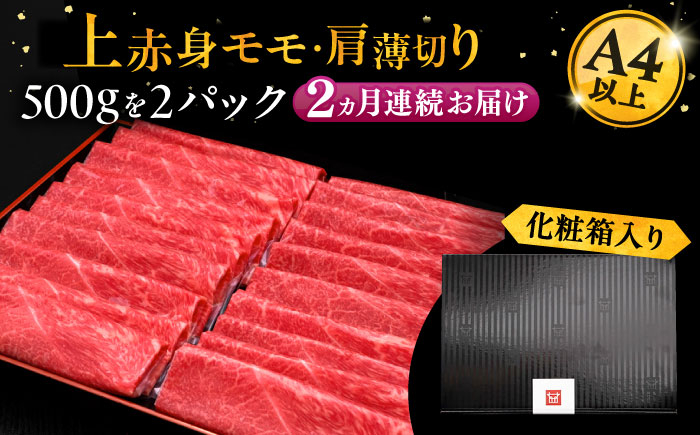 見た目にも華やかな「赤身」の特有の旨味をご堪能下さい。 【全2回定期便】A4ランク以上 博多和牛 上赤身薄切り 1kg《豊前市》【久田精肉店】 [VBK063]