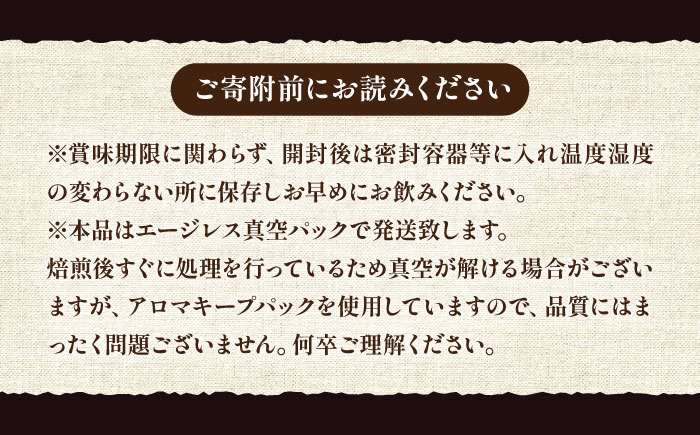 | 容量 | 以下の内容を全6回(月1回)お届けします。 250g×2 ※豆・粉のどちらかお選びください。 ※賞味期限に関わらず、開封後は密封容器等に入れ温度湿度の変わらない所に保存しお早めにお飲みください。 ※本品はエージレス真空パックで発送致します。焙煎後すぐに処理を行っているため真空が解ける場合がございますが、アロマキープパックを使用していますので、品質にはまったく問題ございません。何卒ご理解ください。 【原料原産地】 ペルー 【加工地】 福岡県豊前市 |