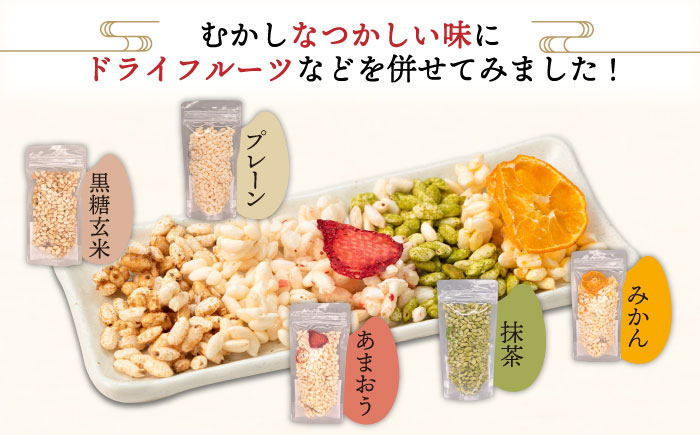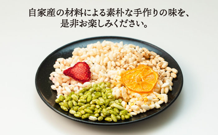 | 容量 | ポン菓子 5種(あまおう25g・みかん25g・プレーン20g・抹茶20g・黒糖玄米20g)×3袋 【原料原産地】 米(豊前市産)あまおう(豊前市産)みかん(豊前市産)砂糖(国産) 【加工地】 豊前市 |