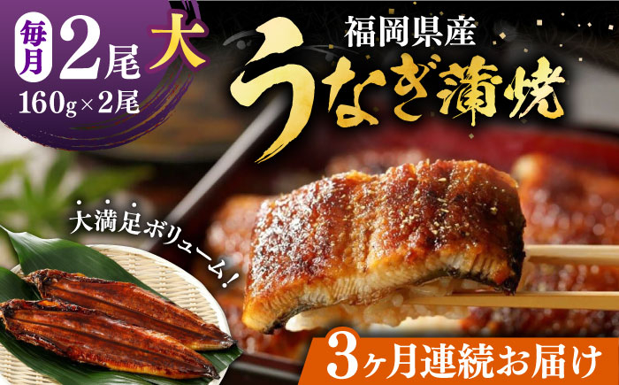 国産うなぎを秘伝のたれでふっくらと焼き上げました! 【全3回定期便】福岡県産 うなぎ 蒲焼 大2尾 合計 320 g(1尾あたり 160g以上)《豊前市》【福岡養鰻】 国産 うなぎ 大 [VAD011]