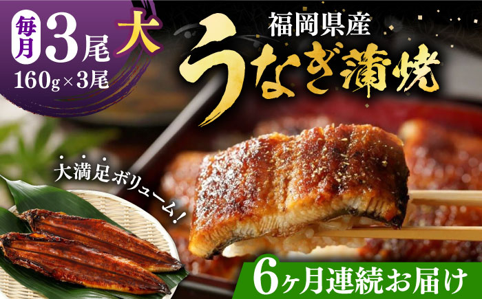 国産うなぎを秘伝のたれでふっくらと焼き上げました! 【全6回定期便】福岡県産 うなぎ 蒲焼 大3尾 合計 480 g(1尾あたり 160g以上)《豊前市》【福岡養鰻】 国産 うなぎ 大 [VAD015]