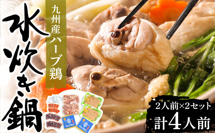 骨付き鳥モモ肉と柚子香る手作りつみれ。鍋〆に福岡県産米麺。 九州産ハーブ鶏 水炊き鍋2人前×2セット(計4人前)〆はマルゴめん 福岡県産の米粉麺《豊前市》【株式会社マル五】 [VCL032]