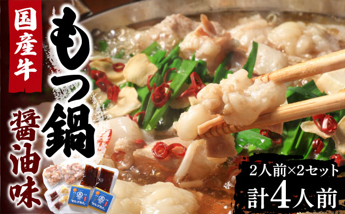 2人前ずつ小分けされているので2回に分けても楽しめます。 国産牛 もつ鍋 醤油味2人前×2セット(計4人前)〆はマルゴめん 福岡県産の米粉麺付き《豊前市》【株式会社マル五】 [VCL033]