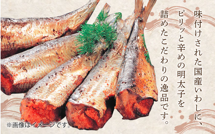 脂のある味付けされた国産いわしに、明太子を詰めたこだわりの逸品です。