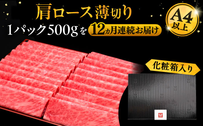 すき焼き、しゃぶしゃぶで甘味と旨味を!! 【全12回定期便】A4ランク以上 博多和牛 肩ロース薄切り 500g《豊前市》【久田精肉店】 [VBK138]