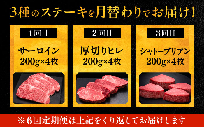 シャトーブリアン・ヒレ・サーロイン!高級ステーキを満喫! 【全6回定期便】博多和牛 食べ比べ ステーキ 定期便 ( サーロイン / ヒレ / シャトーブリアン ) 《豊前市》【久田精肉店】 肉 和牛 牛 精肉 [VBK146]
