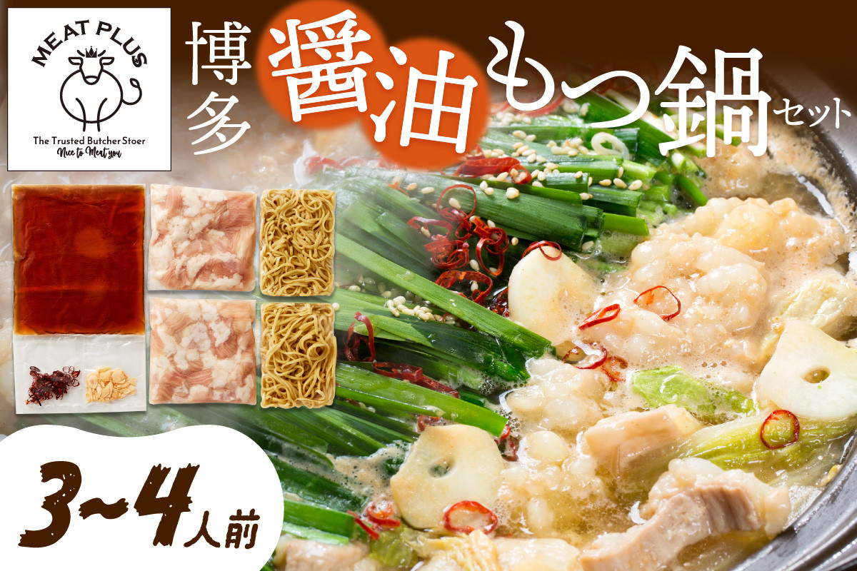 モツ 鍋セット しょうゆ ちゃんぽん 麺付き 海鮮鍋 ちゃんこ鍋 送料無料 博多醤油もつ鍋 3~4人前セット【014-0012】