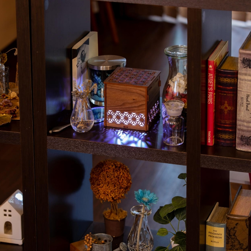 漏れる光の粒が反射してとても美しい小さなボックス型です。