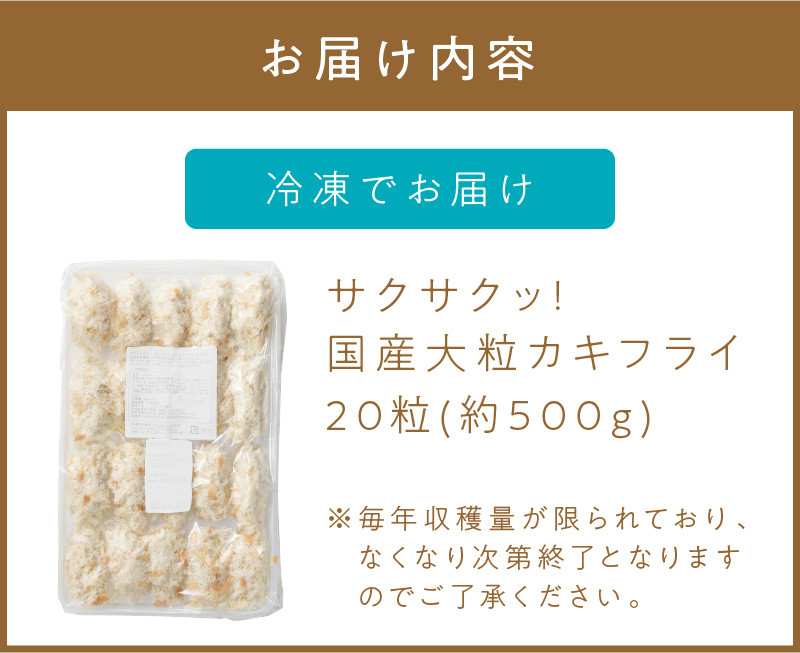 かき 牡蠣 カキ フライ 揚げ物 惣菜 冷凍 500g 送料無料 サクサクッ! 国産大粒カキフライ20粒【001-0066】