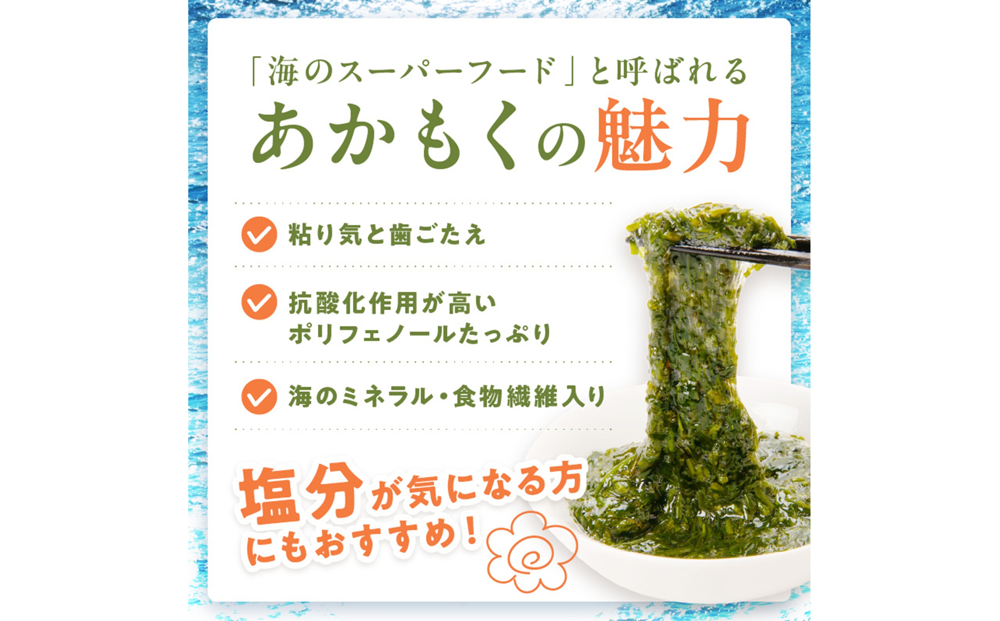 塩分が気になる方にもおすすめ、海のミネラル・食物繊維が含まれております。