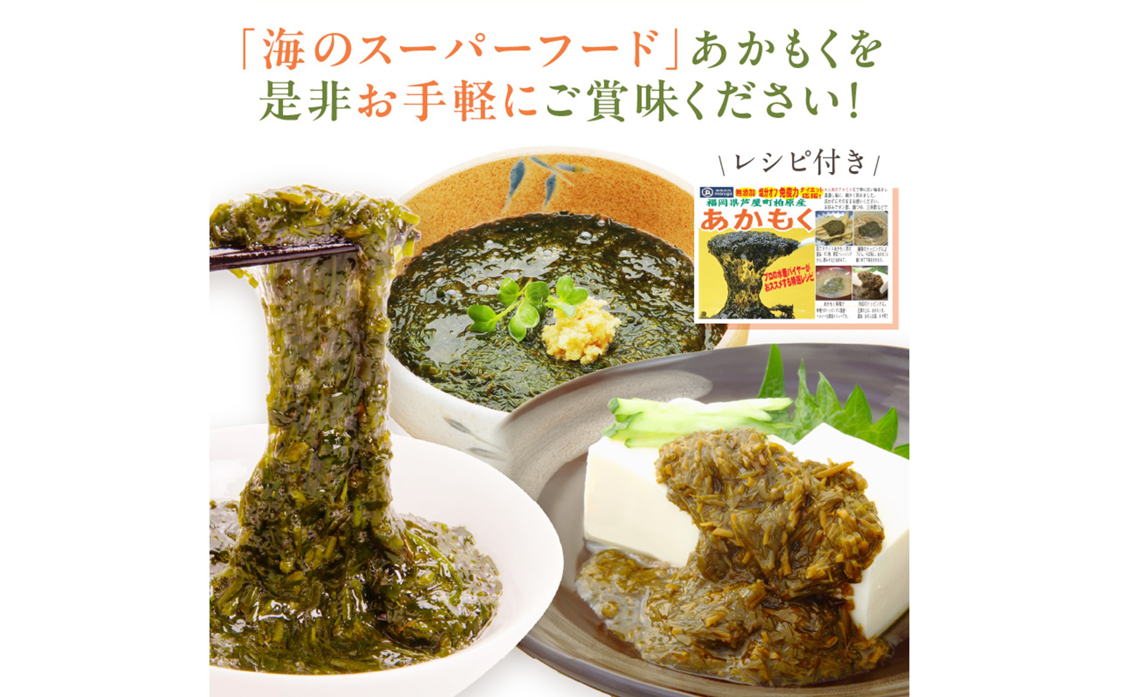 あかもくを美味しくいただける「レシピ」付きです。