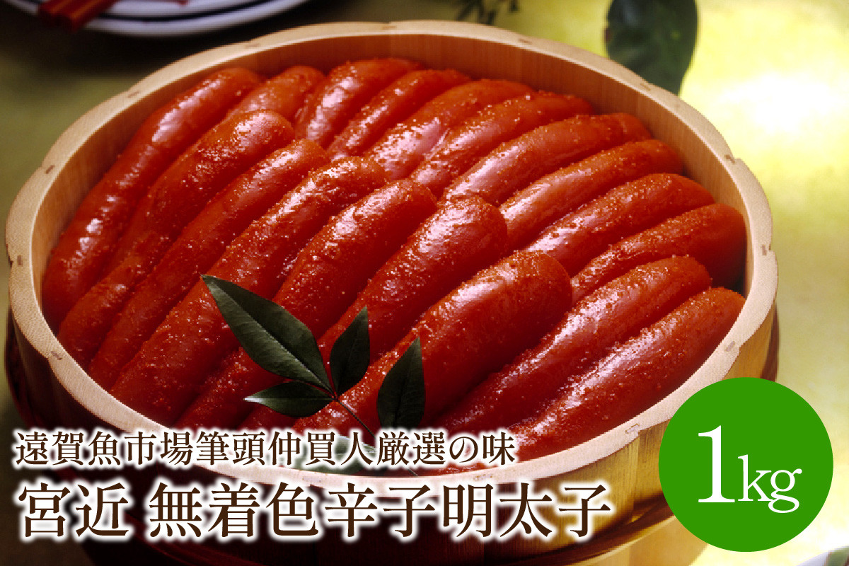 魚介 1キロ 贈答 プレゼント 送料無料 宮近 無着色辛子明太子1kg 化粧箱・包装紙付 遠賀魚市場筆頭仲買人厳選の味 1本物めんたいこ【001-0013】