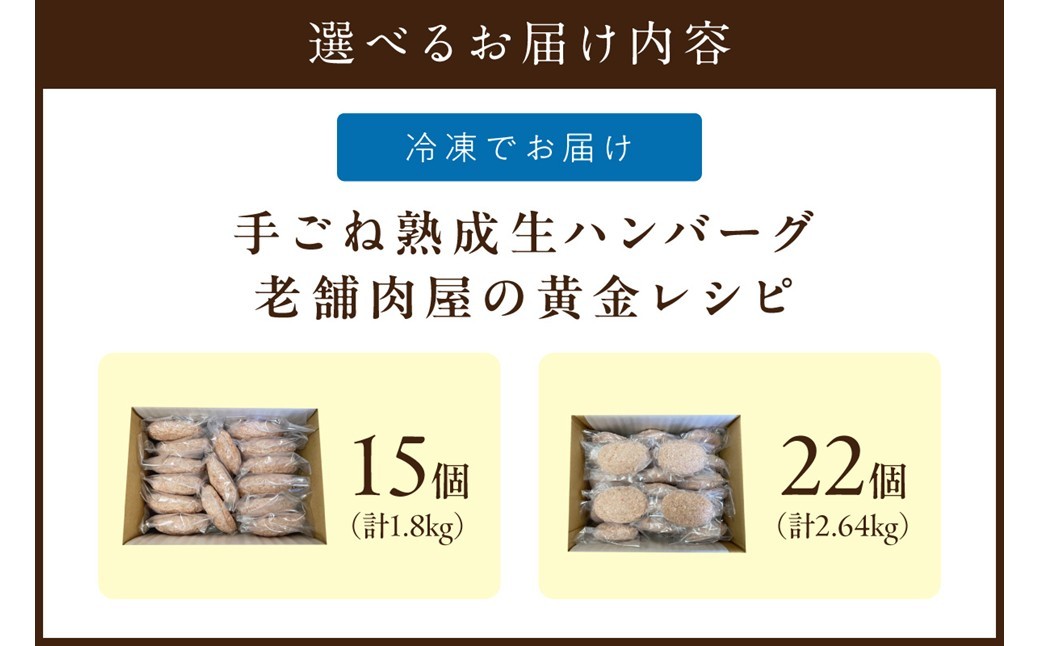 | 容量 | 博多和牛手ごね生ハンバーグ 1個120g ◎内容量をお選びください ・15個 ・22個 |