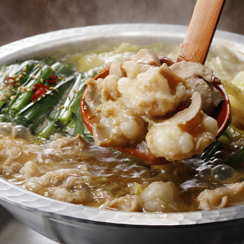 新鮮で柔らかな国産牛小腸のみを使用した、甘い脂の口どけが魅力のもつ鍋です。