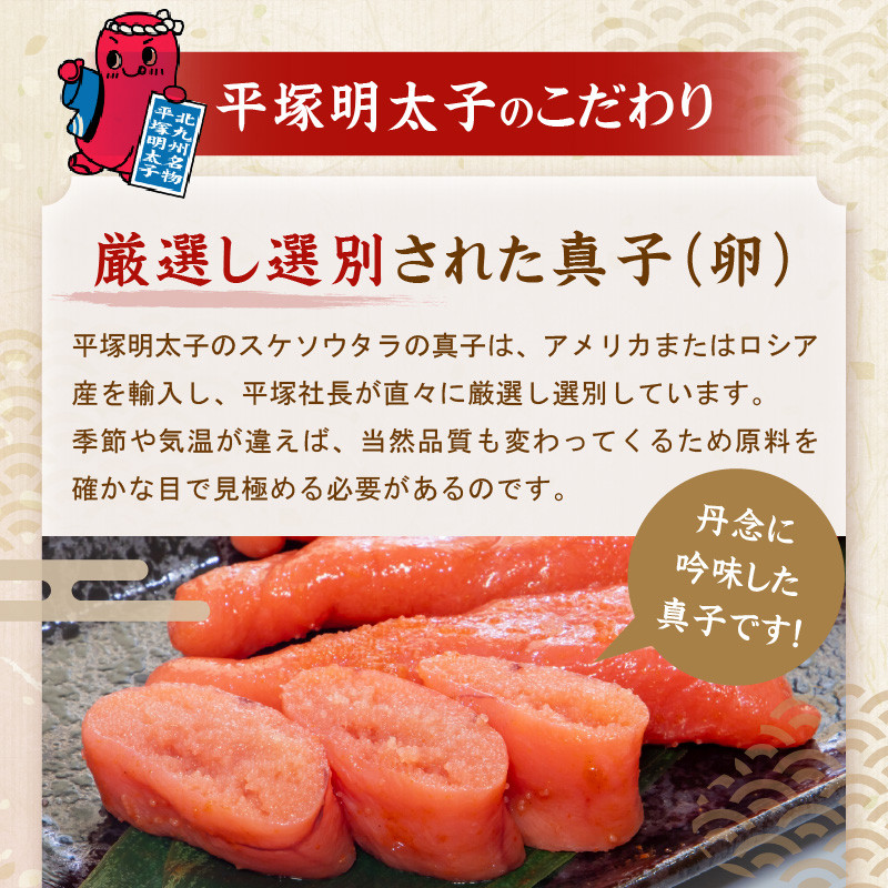 どなたの味覚にもあう、平塚明太子専門店のスタンダードな辛子明太子です。