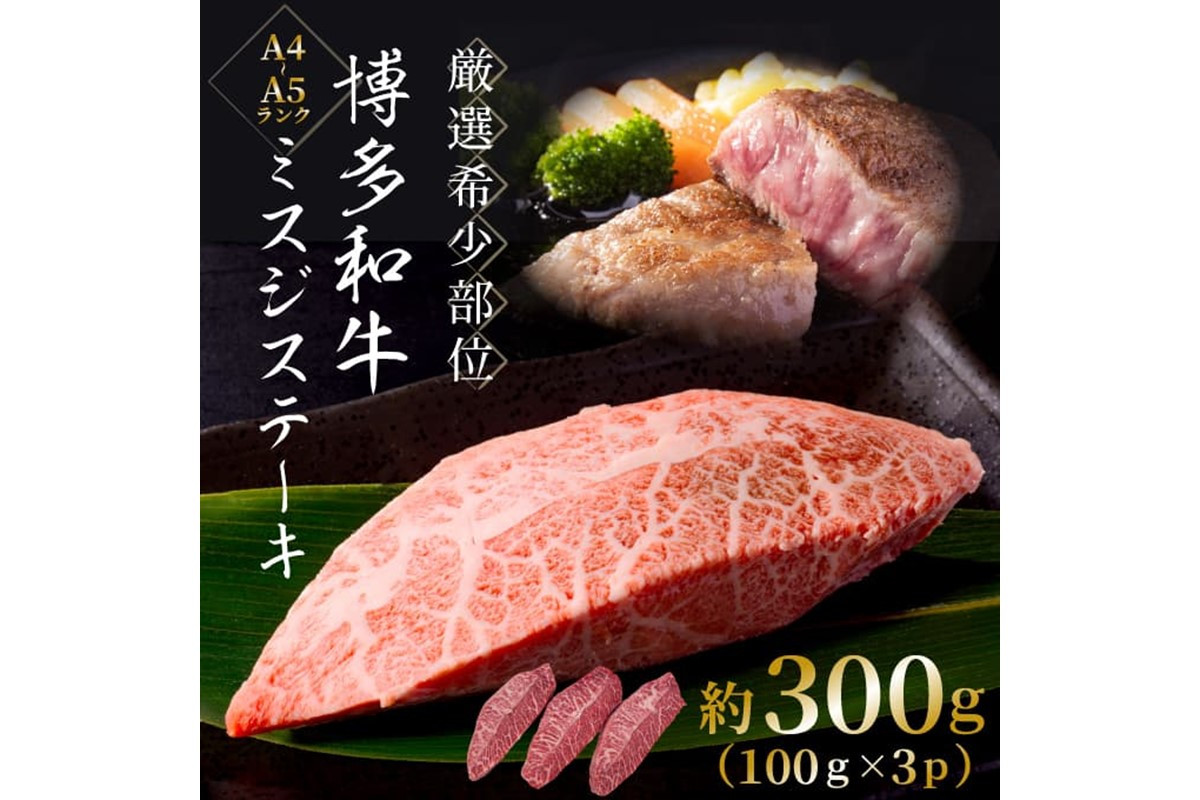 【厳選希少部位】【A4~A5】博多和牛ミスジステーキ約300g(100g×3p)【014-0054】