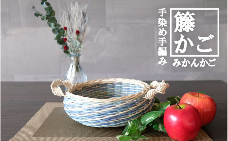 籐かごのみかんかご(ブルー系)[カラーラタン彩都]
