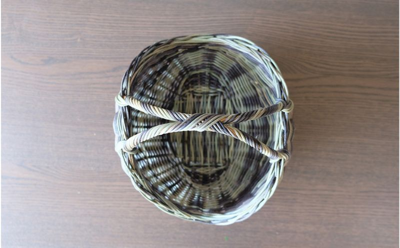オリジナルのカラーで編み上げたバスケットです。 ちょっとしたひざ掛けとお弁当やサンドイッチを入れて ピクニックバスケットとして活躍してくれます。 ワインなどの高さあるものも、立てて入れることが出来ます。 自宅でも、お花を入れて飾ったり、 見せる収納としてもお使いいただけます。 自然素材・手作りならではの風合いをお楽しみください。 ※画像はイメージです。 ※ブラウン系のお色味です。 ※製作にあたって色味のご希望をお聞きすることがございます。 ※染め上がりに一つ一つ若干の違いがあります。 ※染め上がり方によって、編み上げたときに色の出方が異なります。 オンリーワンの手編みのかごをお楽しみください。