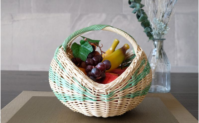 籐かごのみかんかご(グリーン系)[カラーラタン彩都]